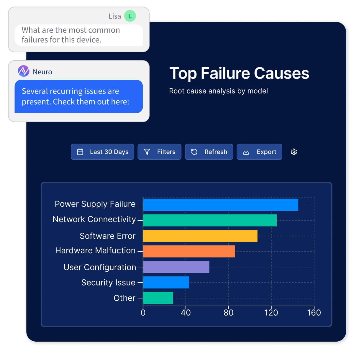 Anticipate outages by Surfacing next-likely errors before they develop into cascading failures. Develop bespoke PM plans for assets based on prior patterns across similar issues.