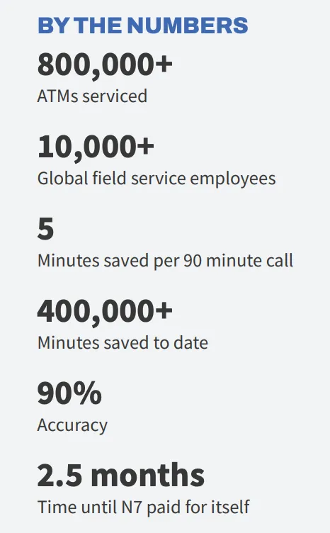 A. This was the beginning grounds of AI for NCR Atleos. These are quintessential services issues: first time resolve, revisits, and massive amounts of attrition in different parts of the world.
