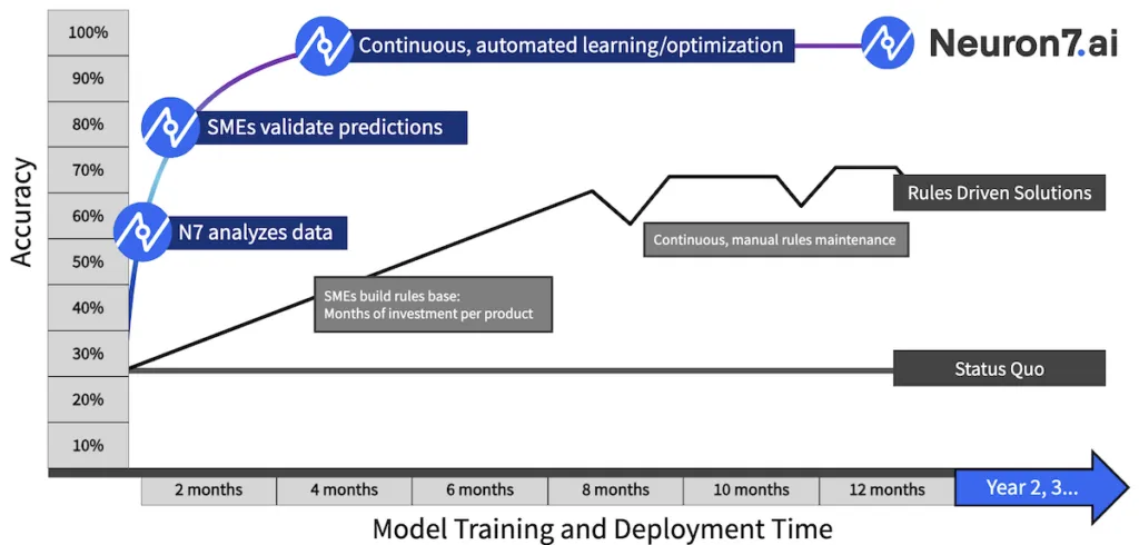 Neuron7’s AI is purpose-built for complex service environments and requires minimal tuning by your SMEs. This frees your top talent to engineer new products and focus on your most challenging issues, while your AI learns and shares optimized resolution paths with your entire service organization.