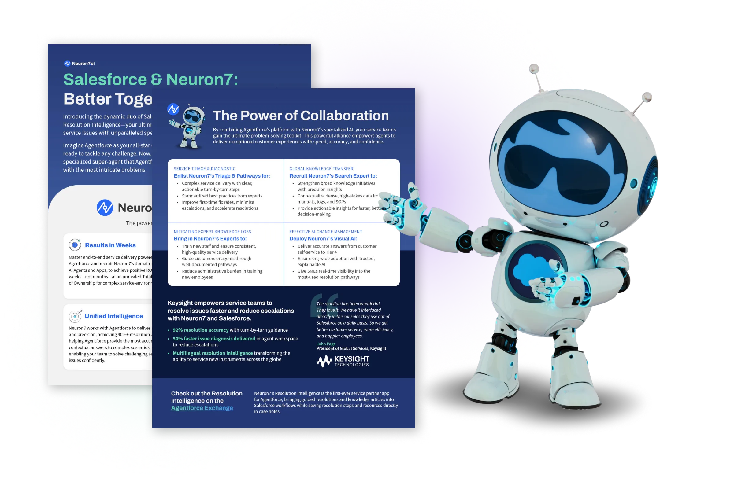 Neuron7’s agentic AI gives service teams step-by-step guidance to resolve issues faster, seamlessly integrated with Salesforce Service and Agentforce.